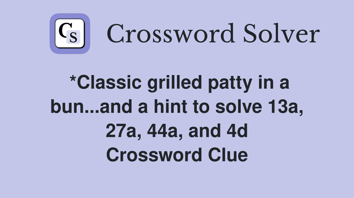 *Classic grilled patty in a bun and a hint to solve 13a 27a 44a