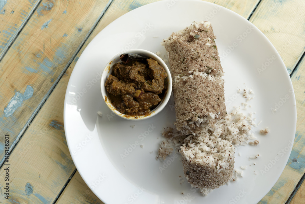 South Indian Steamed Brown Rice Cake (Puttu) with Arabian Camel Roast