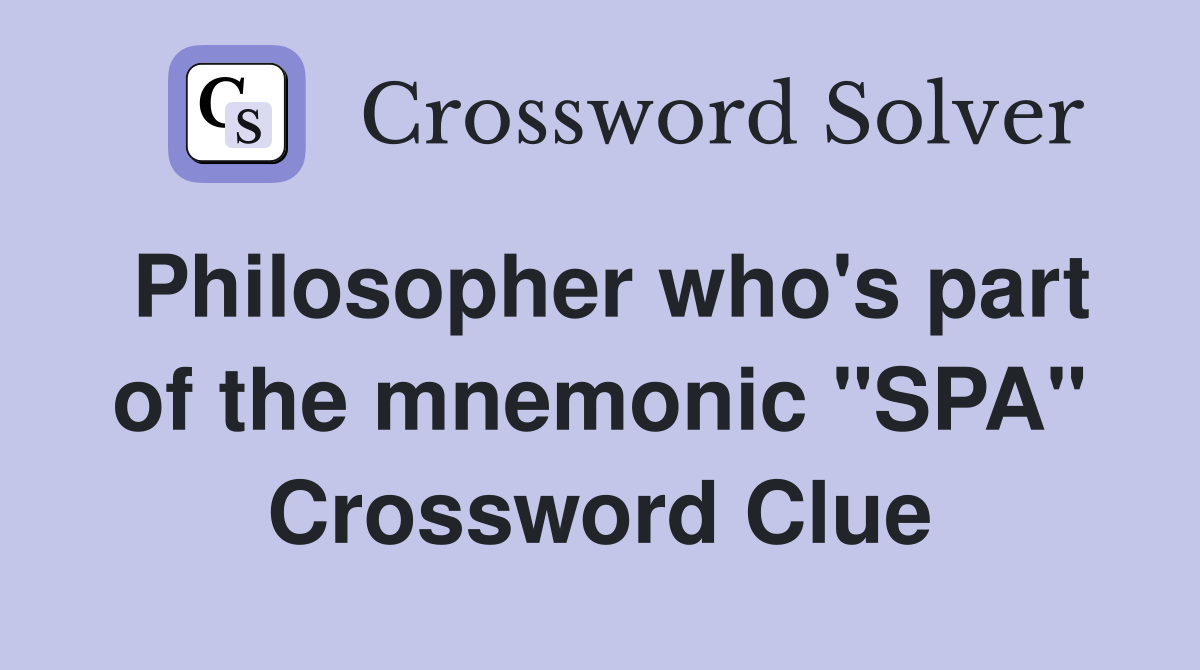 Philosopher who #39 s part of the mnemonic quot SPA quot Crossword Clue Answers