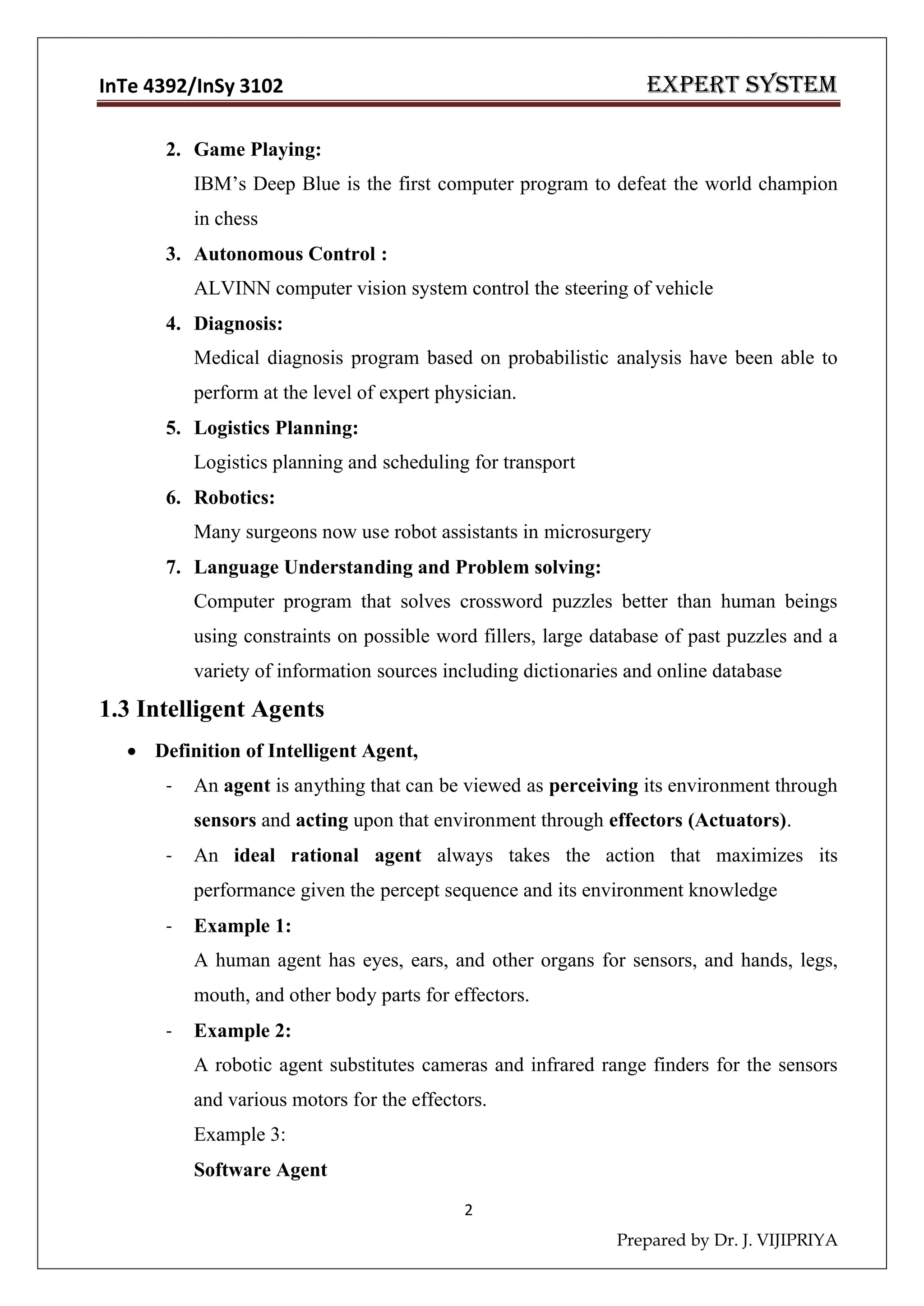 Expert System Lecture Notes Chapter 1 2 3 4 5 Dr J VijiPriya PDF
