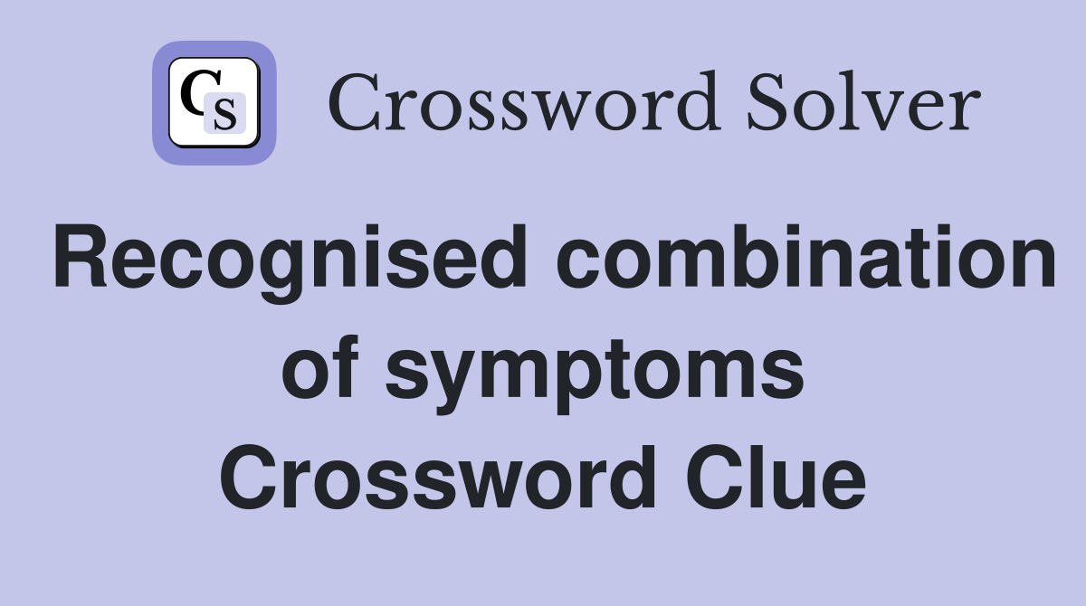 Recognised combination of symptoms Crossword Clue Answers Crossword