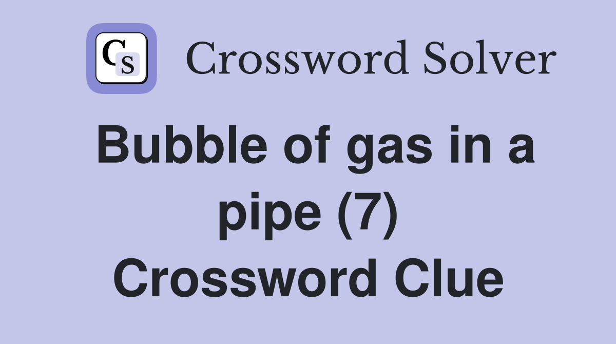 Bubble of gas in a pipe (7) Crossword Clue Answers Crossword Solver