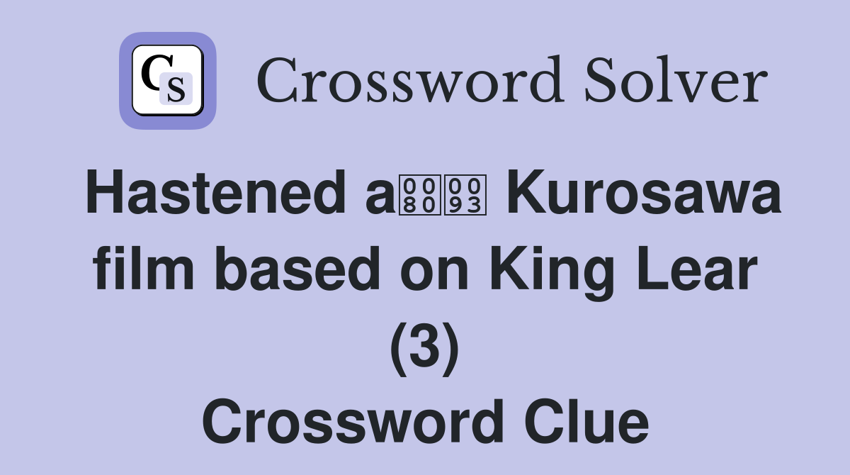 Hastened a Kurosawa film based on King Lear (3) Crossword Clue