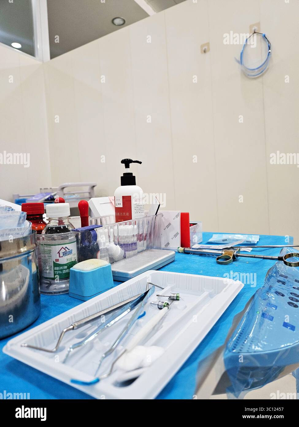 sterile instruments for performing small operation are placed on an