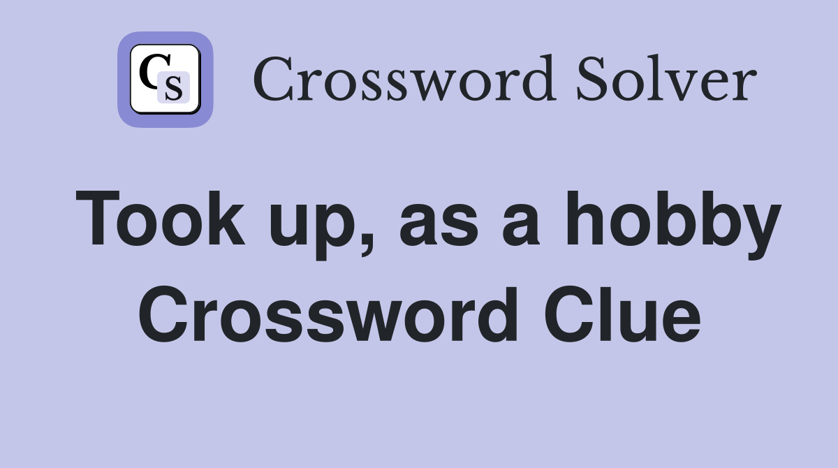 Took up as a hobby Crossword Clue Answers Crossword Solver