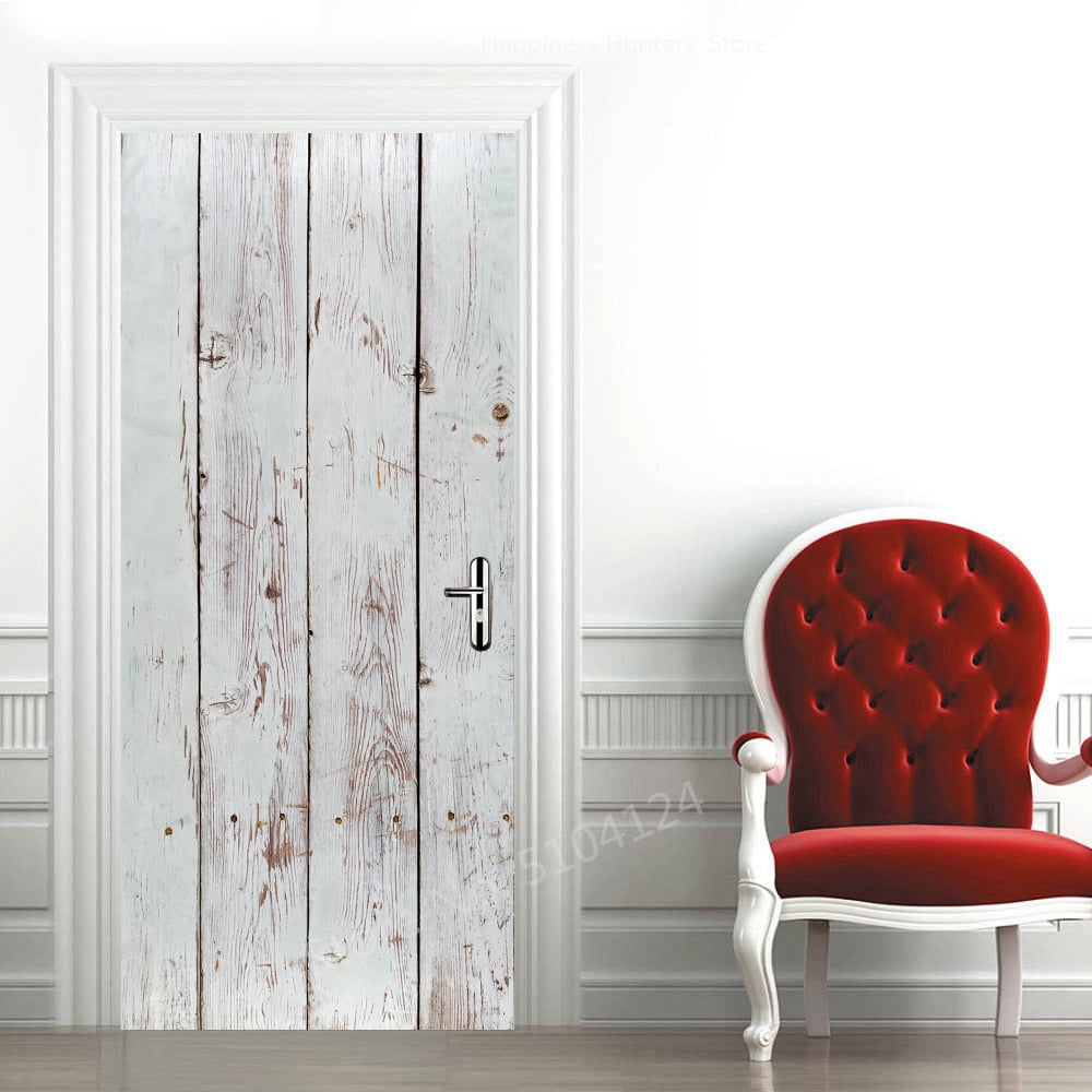 Custom Self Adhesive Vintage Wooden Door Sticker Wallpaper On The Door