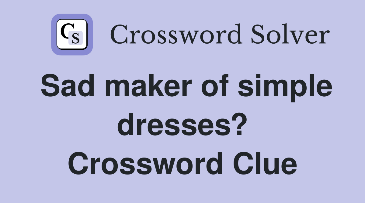 Sad maker of simple dresses? Crossword Clue Answers Crossword Solver
