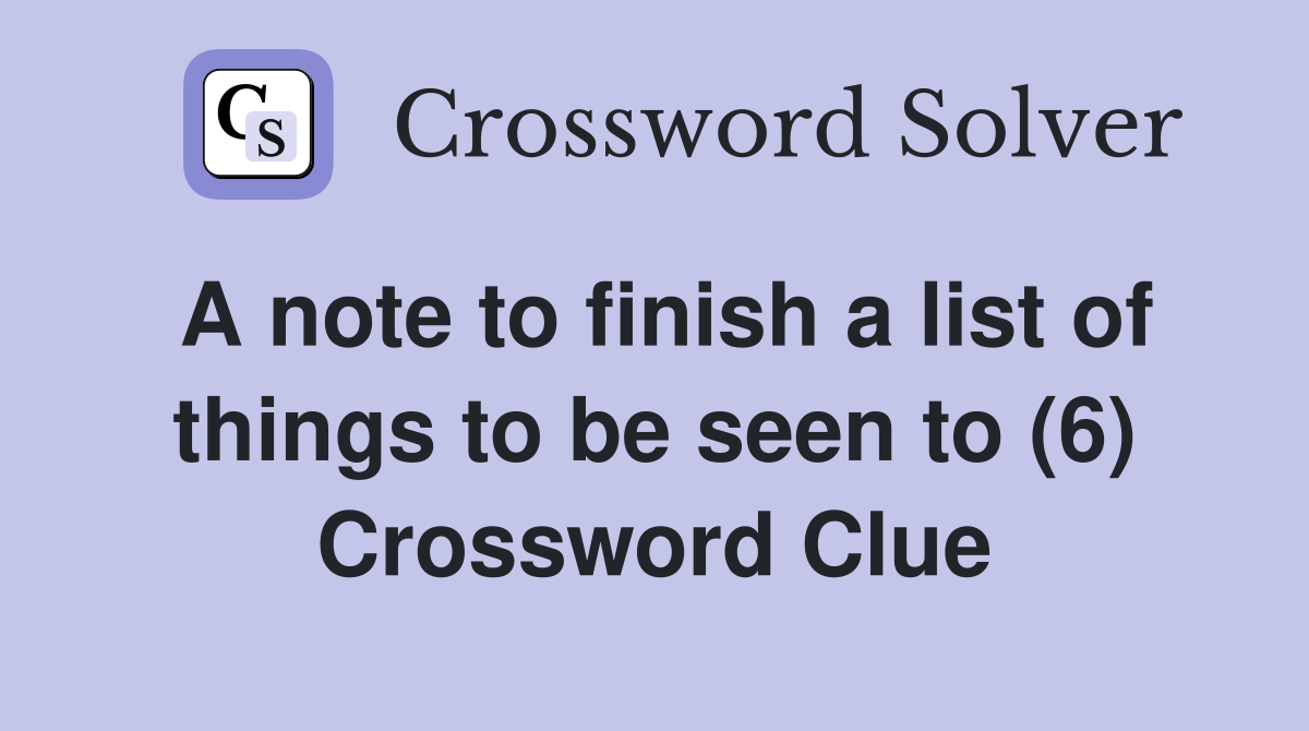 A note to finish a list of things to be seen to (6) Crossword Clue