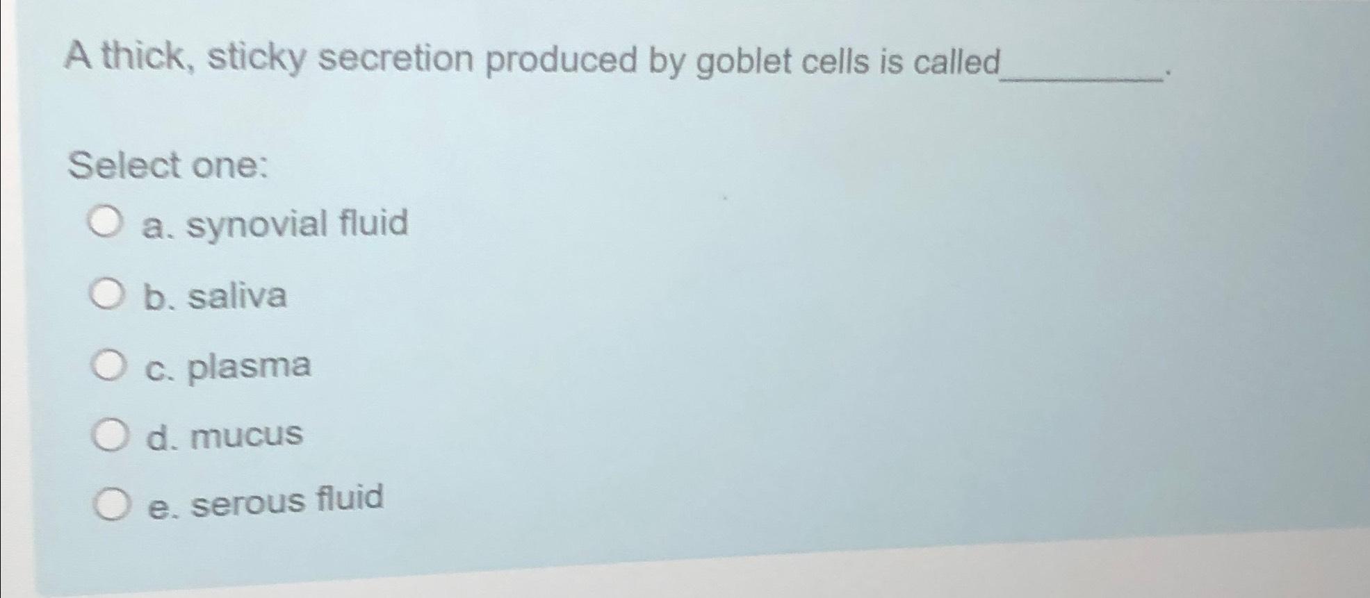Solved A thick sticky secretion produced by goblet cells is Chegg com