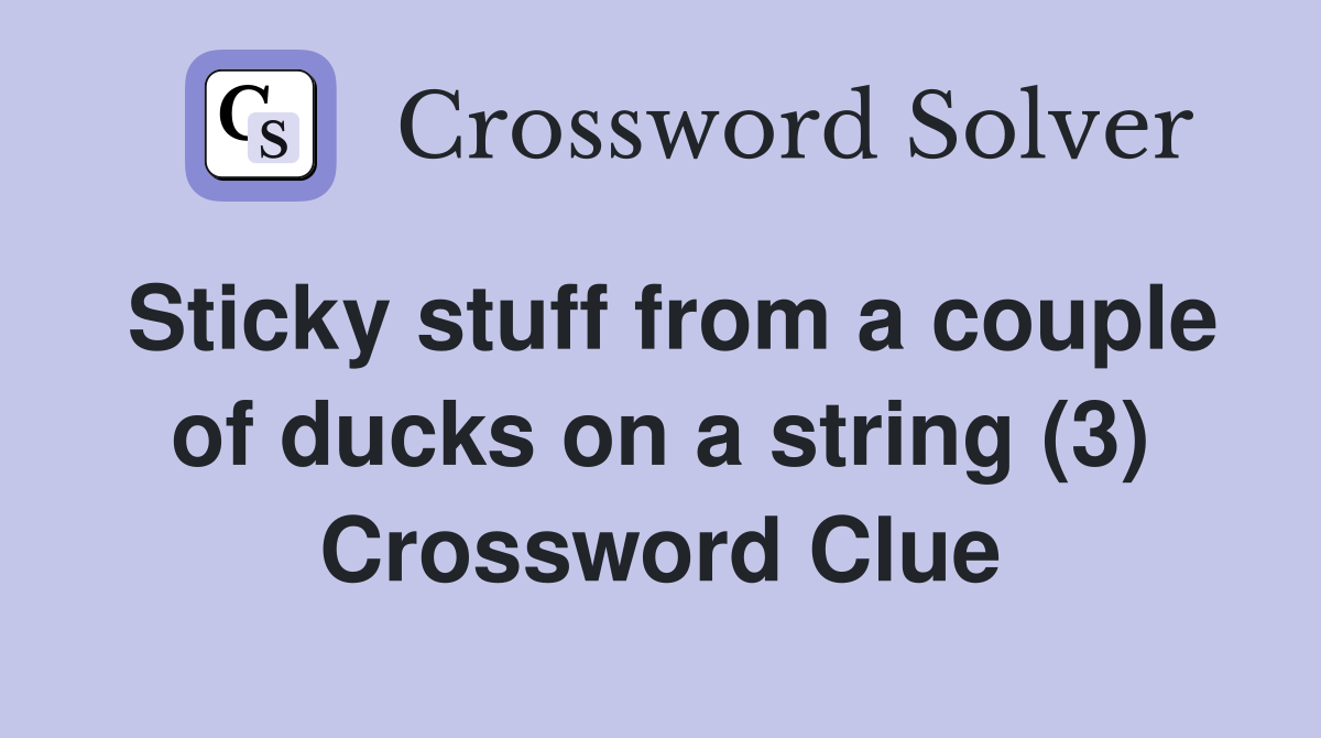 Sticky stuff from a couple of ducks on a string (3) Crossword Clue