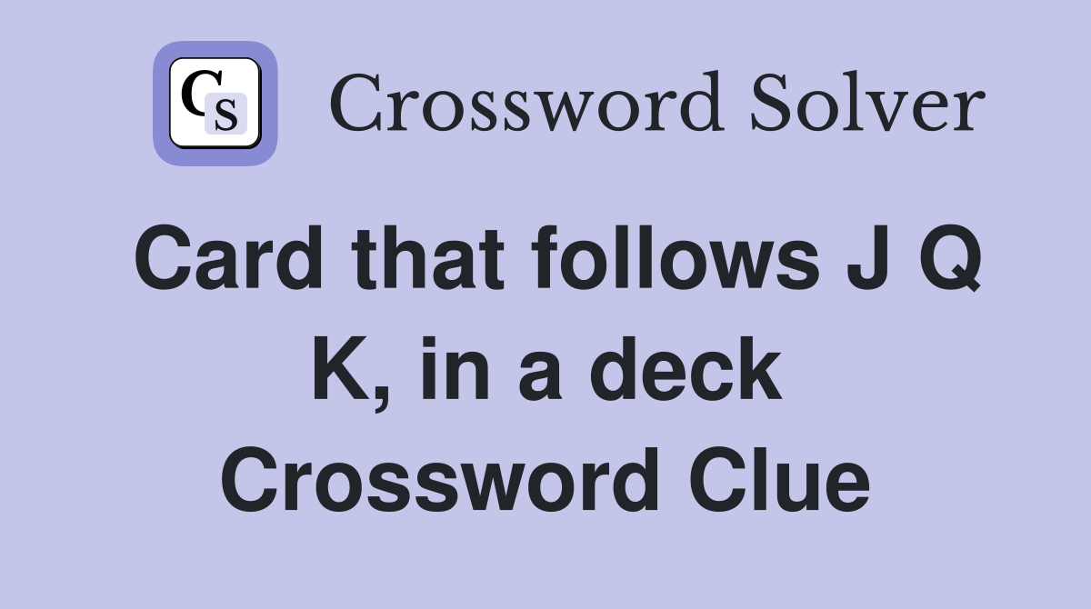 Card that follows J Q K in a deck Crossword Clue Answers Crossword