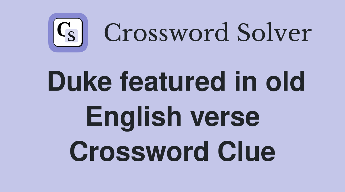 Duke featured in old English verse Crossword Clue Answers Crossword