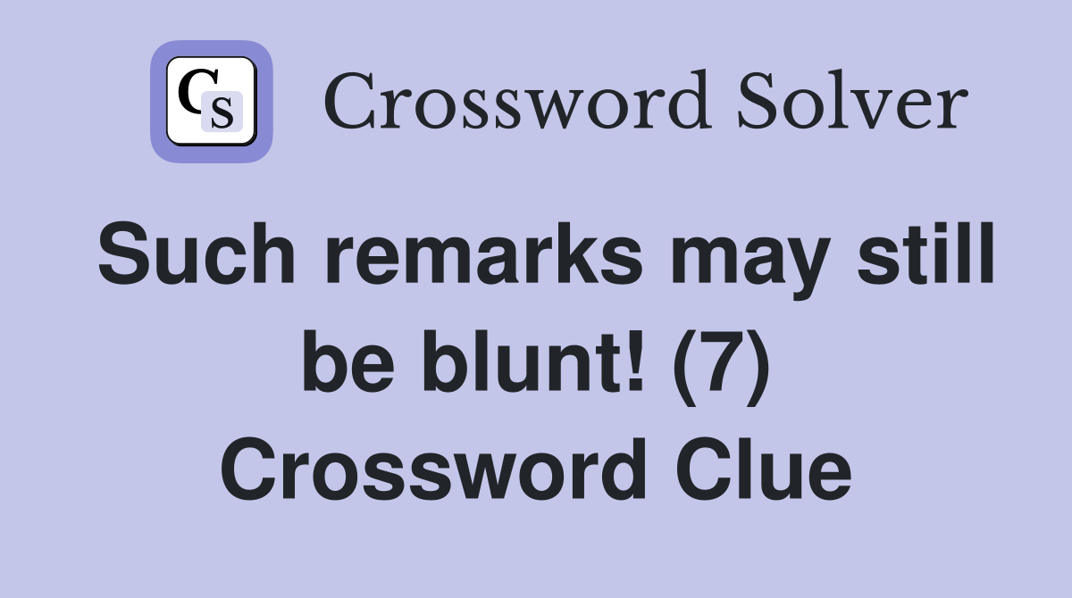 Such remarks may still be blunt (7) Crossword Clue Answers