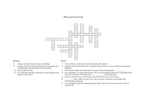 play and learning crossword Teaching Resources