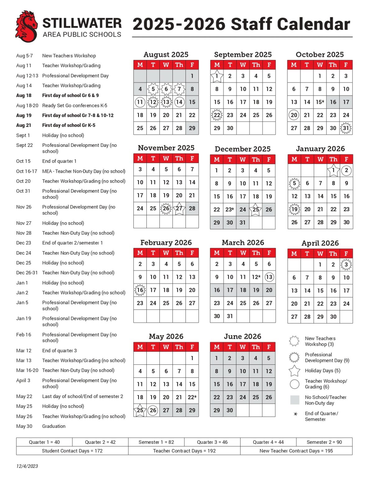 2025 26 School Calendar District News Detail Stillwater Area Public