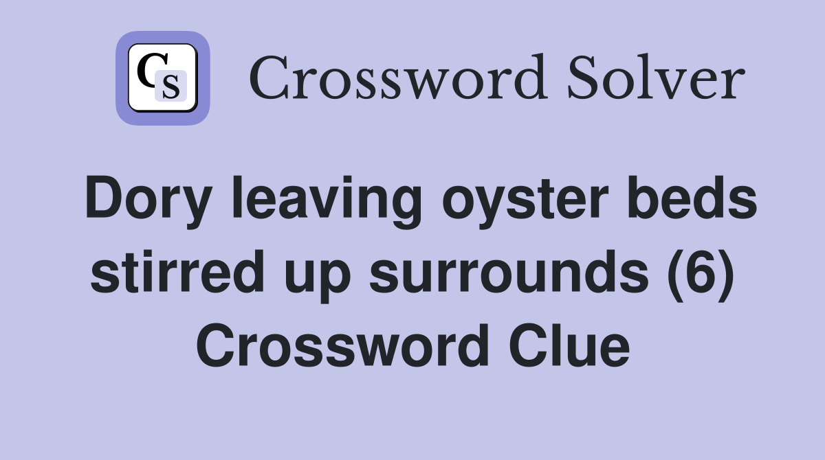 Dory leaving oyster beds stirred up surrounds (6) Crossword Clue