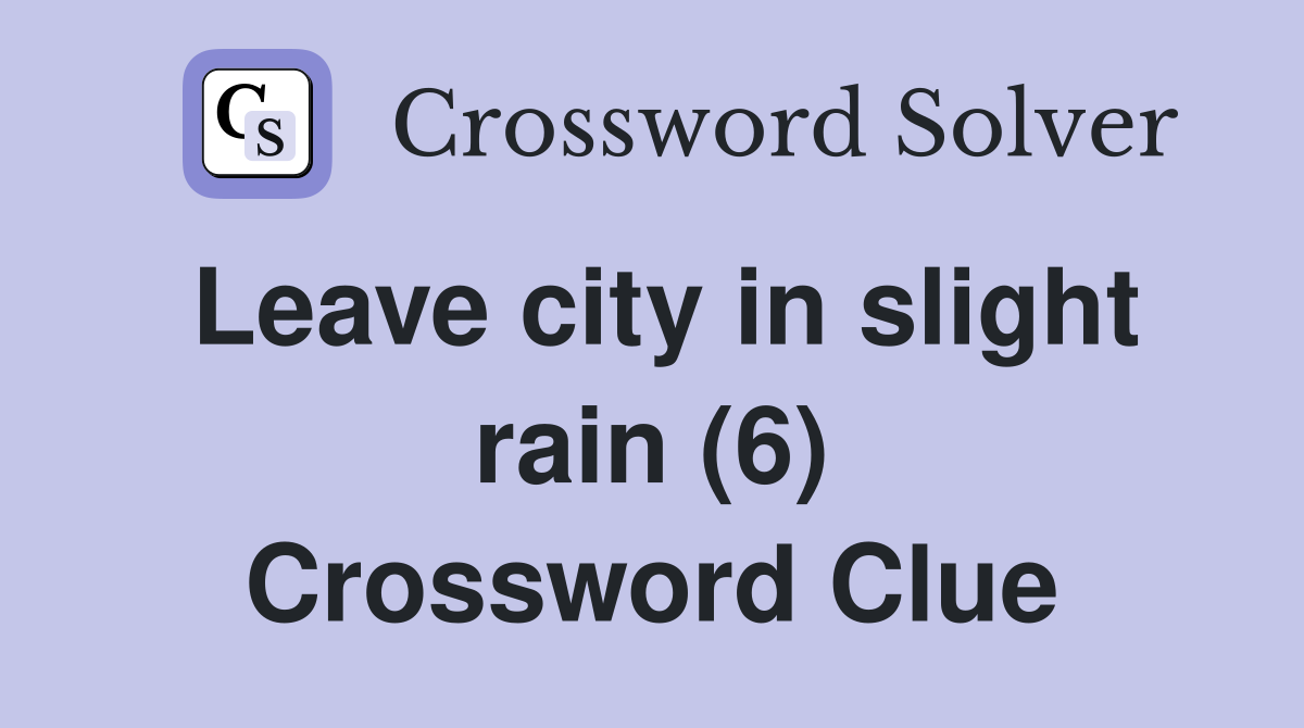 Leave city in slight rain (6) Crossword Clue Answers Crossword Solver