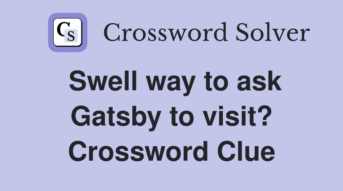 Swell way to ask Gatsby to visit? Crossword Clue Answers Crossword