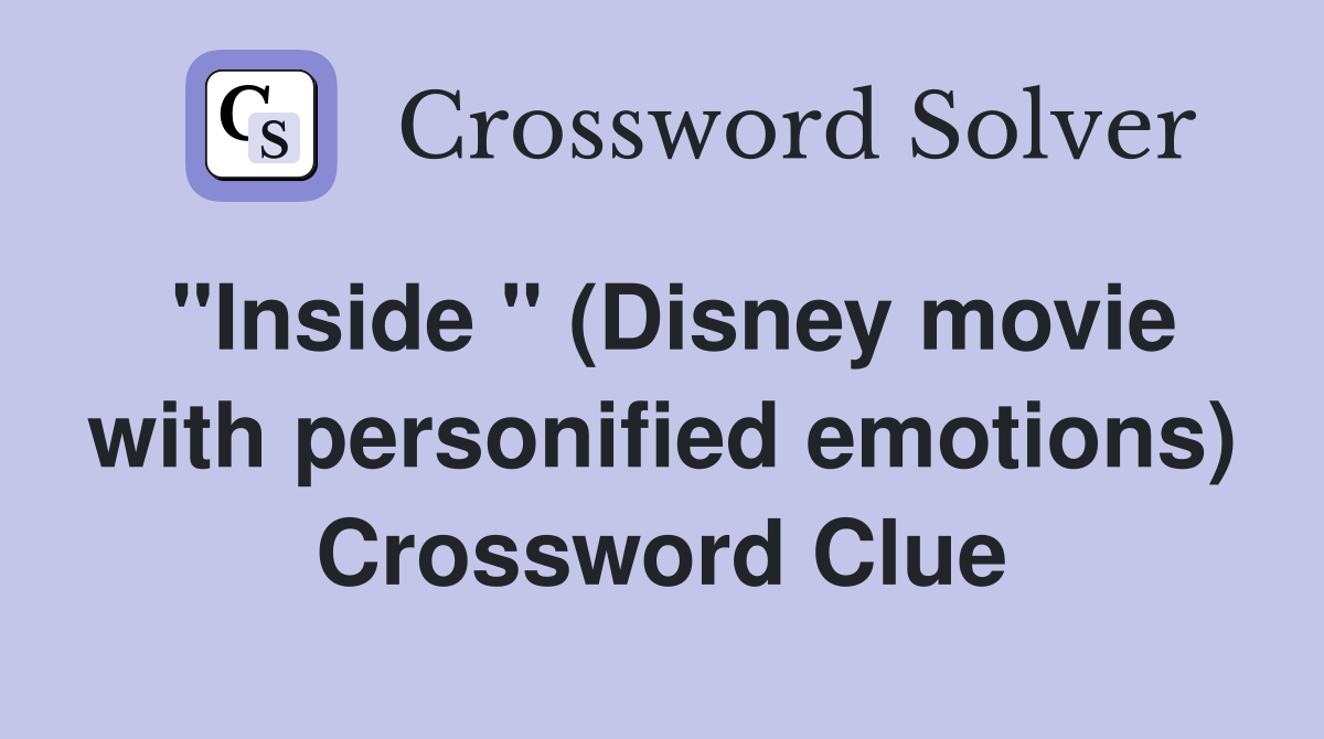 quot Inside quot (Disney movie with personified emotions) Crossword Clue