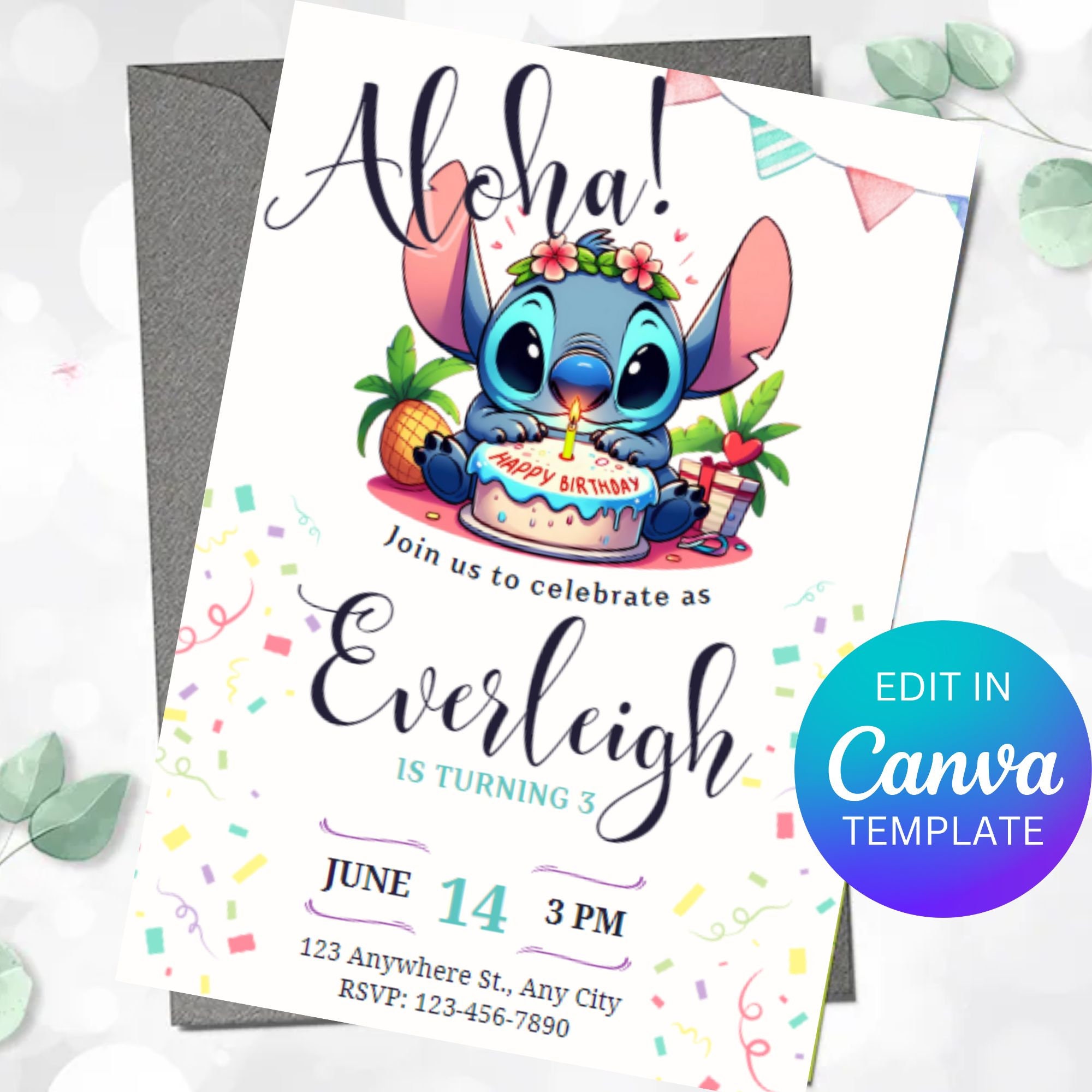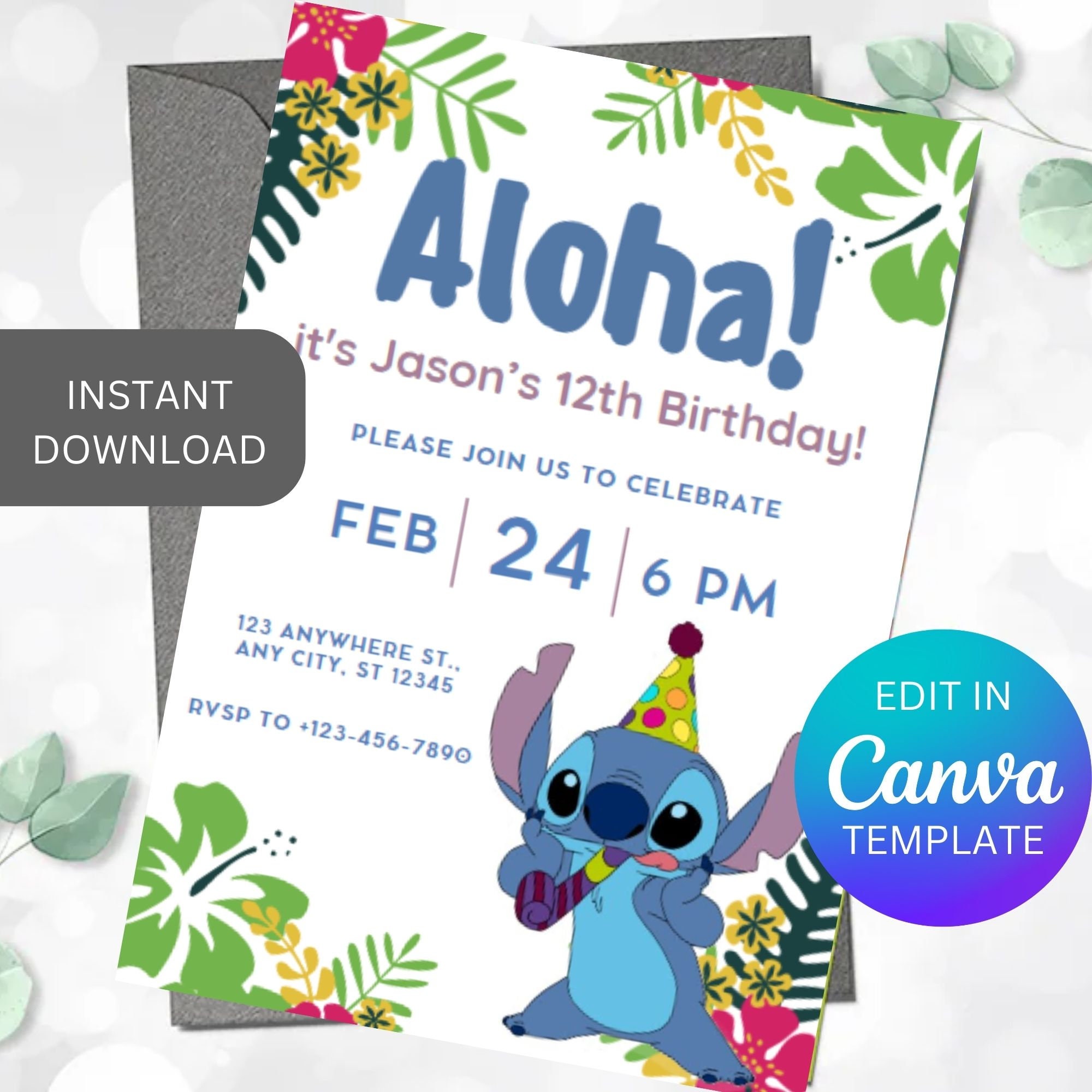 Stitch Birthday Invitation Editable Party Invite Canva Template