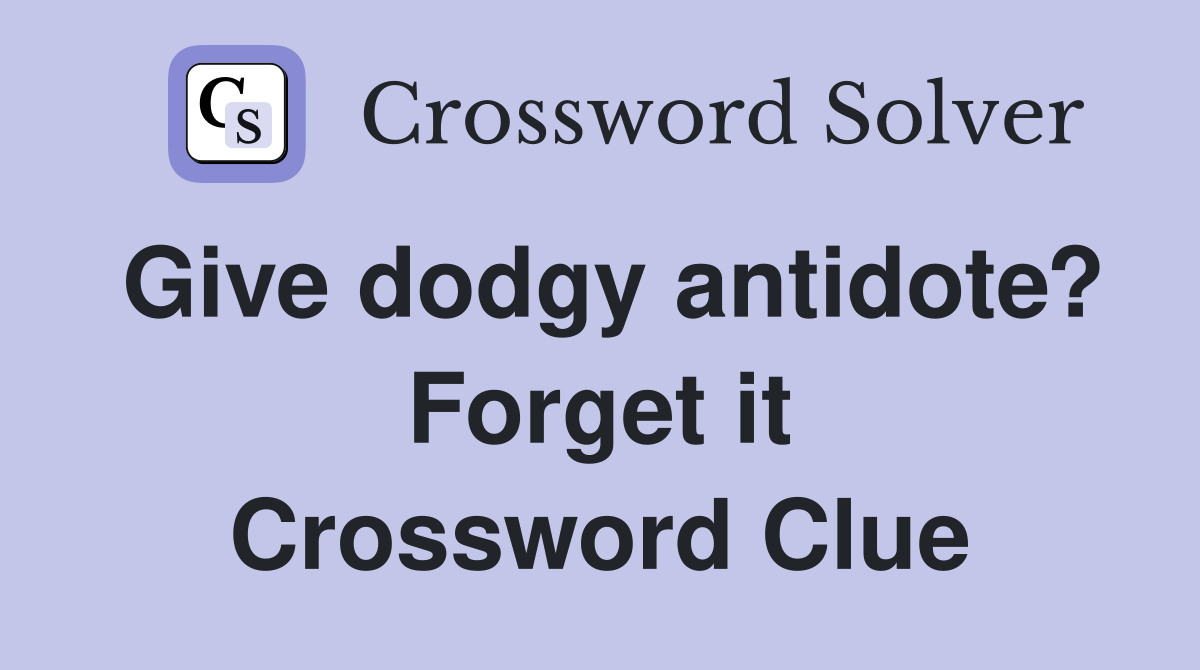 Give dodgy antidote? Forget it Crossword Clue Answers Crossword Solver