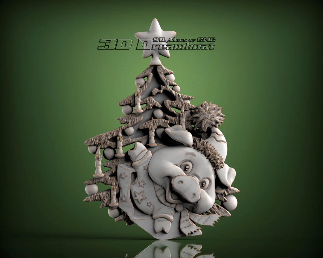 Pig and Christmas Tree 3d STL Model for CNC Router Artcam Vetric