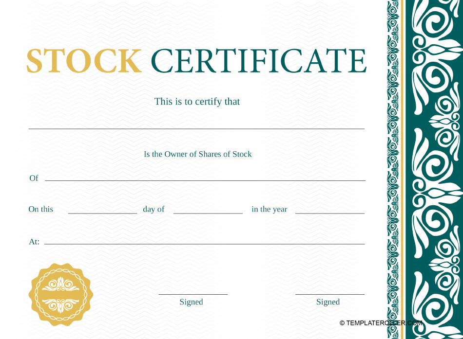 Printable Stock Certificate Template
