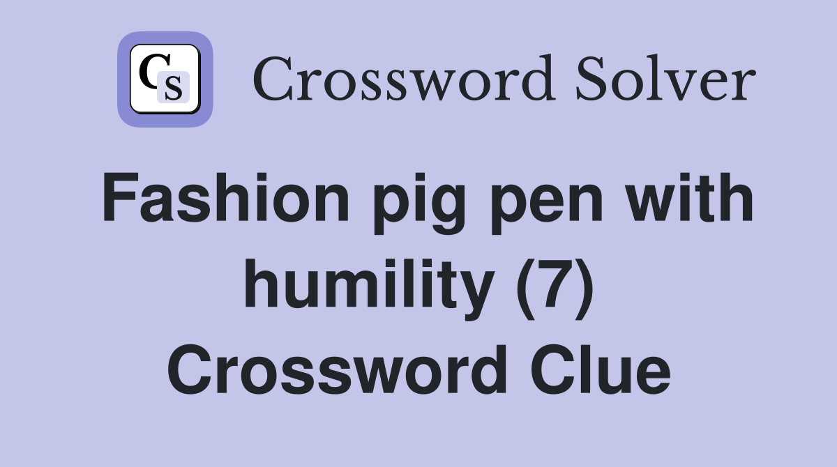 Fashion pig pen with humility (7) Crossword Clue Answers Crossword