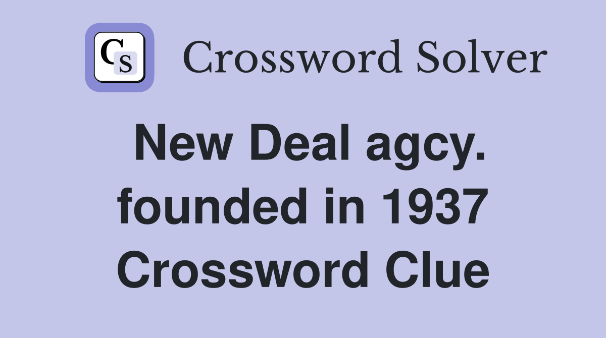 New Deal agcy founded in 1937 Crossword Clue Answers Crossword Solver