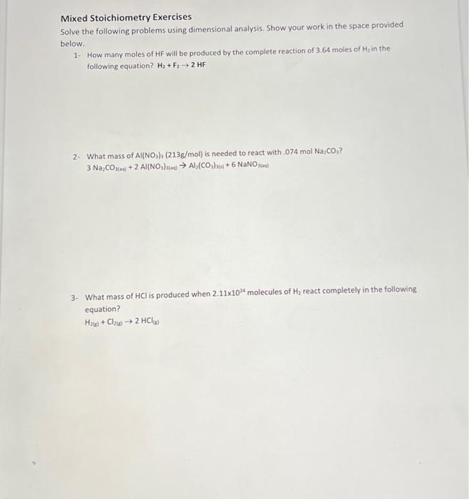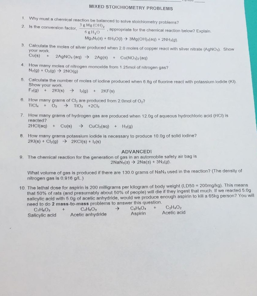 Solved MIXED STOICHIOMETRY PROBLEMS 1 Why must a chemical Chegg com
