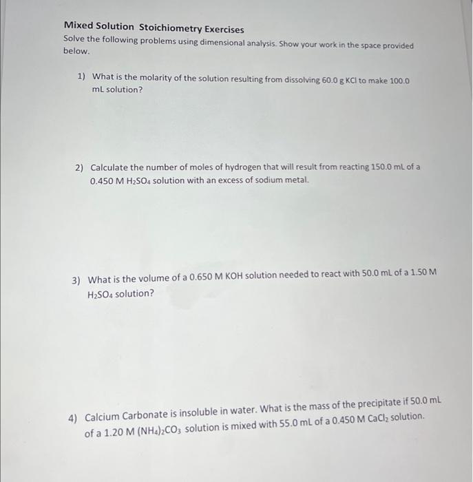 Solved Mixed Solution Stoichiometry Exercises Solve the Chegg com