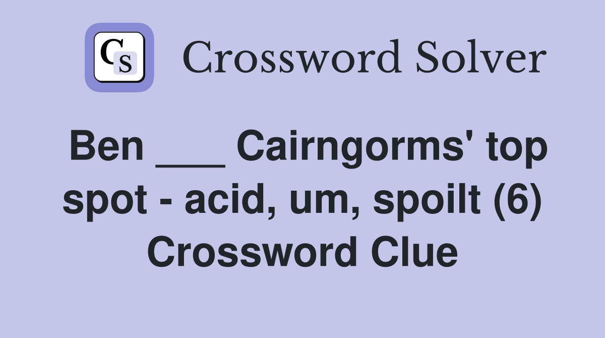 Ben Cairngorms #39 top spot acid um spoilt (6) Crossword Clue