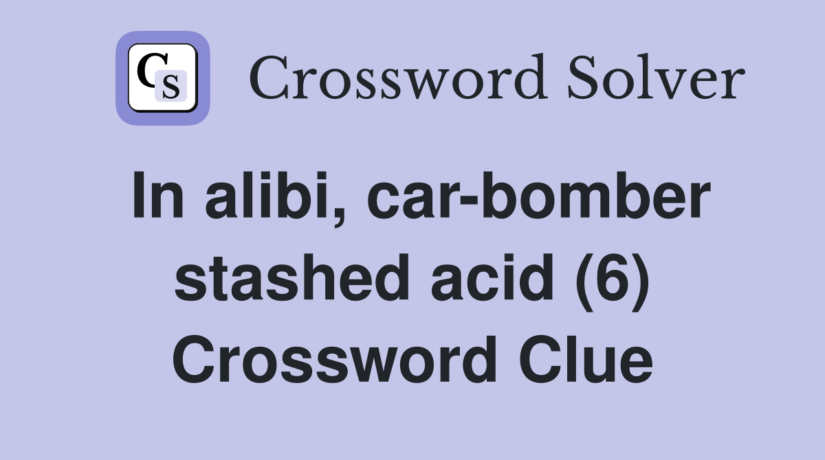 In alibi car bomber stashed acid (6) Crossword Clue Answers