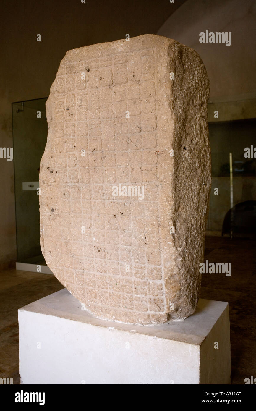 Stone Mayan calendar on display in San Miguel Fort in Campeche Mexico