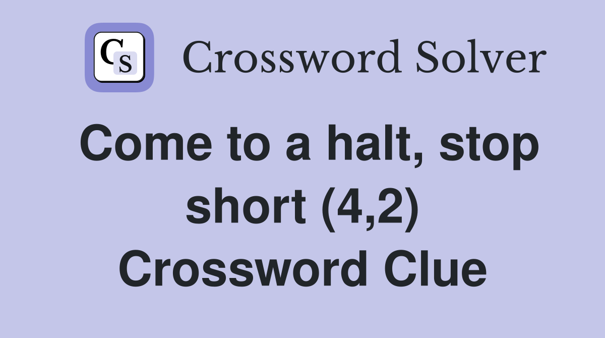 Come to a halt stop short (4 2) Crossword Clue Answers Crossword
