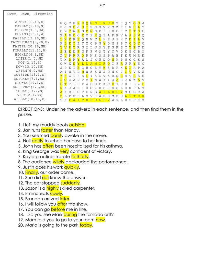 ADVERBS Grammar Middle School 6th Grade 7th Grade 8th Grade Parts of