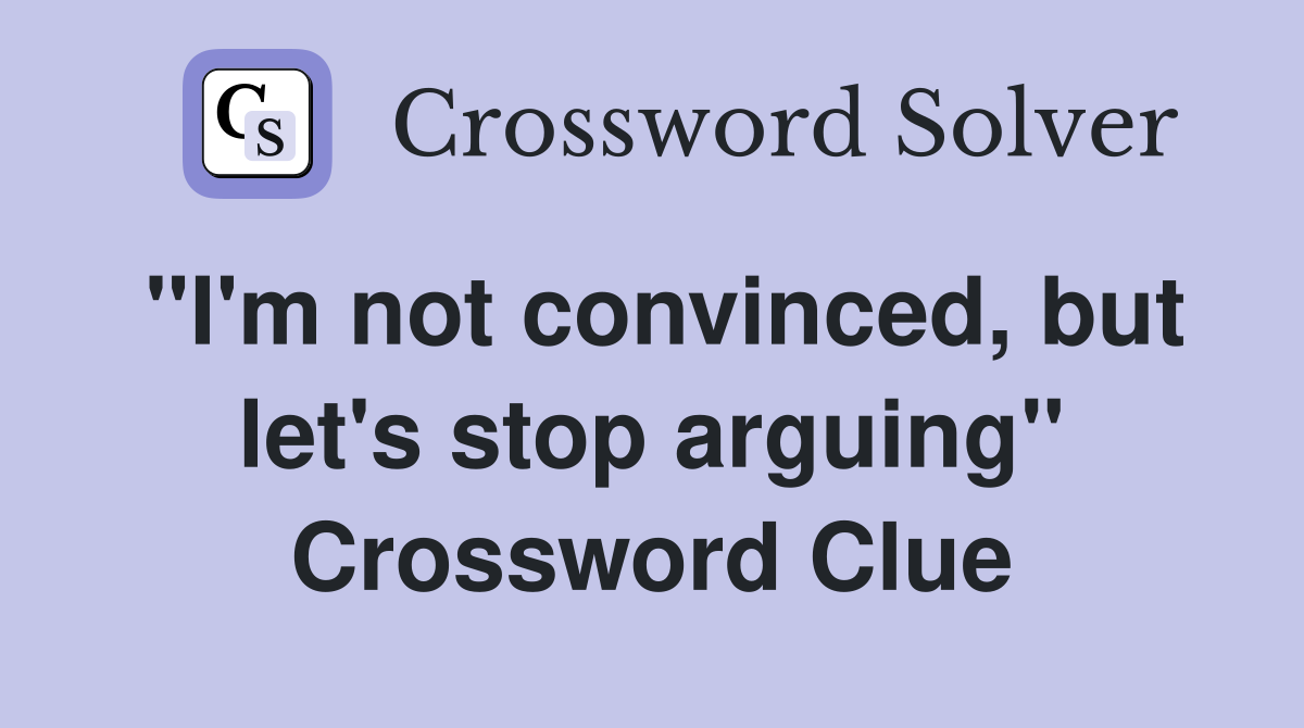 quot I #39 m not convinced but let #39 s stop arguing quot Crossword Clue Answers