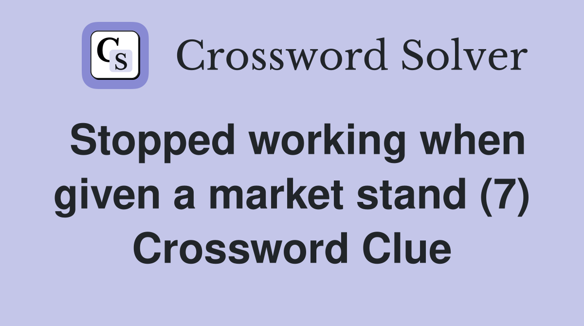 Stopped working when given a market stand (7) Crossword Clue Answers