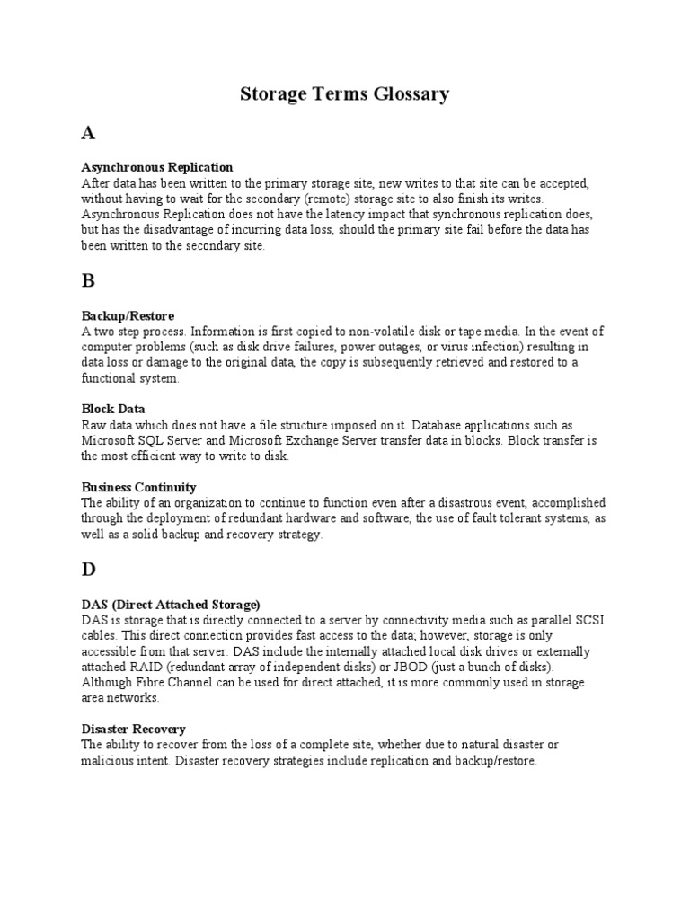 Storage Terms Glossary A: Asynchronous Replication PDF Computer