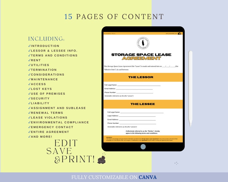 Storage Space Lease Agreement Template in Word PDF Google Docs Pages