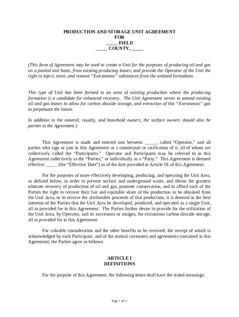 Production and Storage Unit Agreement Doc Template pdfFiller