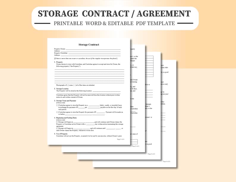 Storage Contract Agreement Printable/editable Word and PDF Template