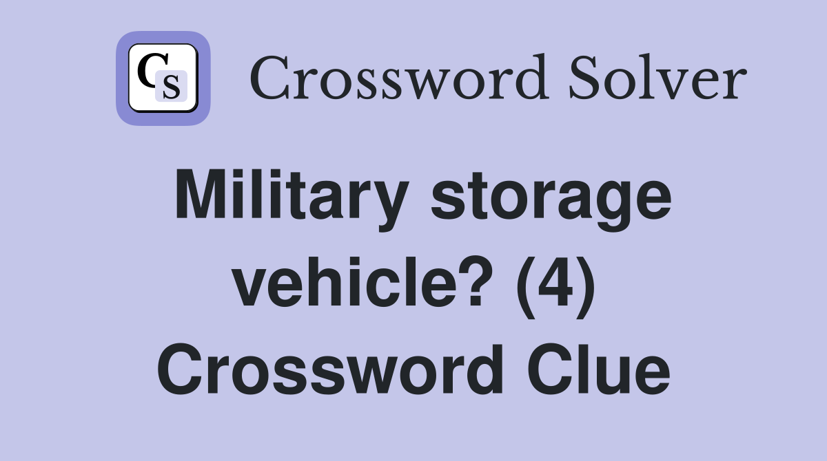 Military storage vehicle? (4) Crossword Clue Answers Crossword Solver