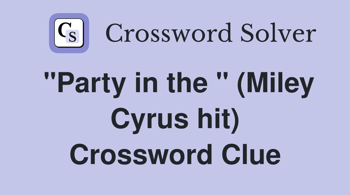 quot Party in the quot (Miley Cyrus hit) Crossword Clue Answers Crossword