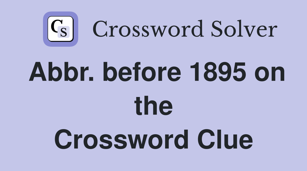 Abbr before 1895 on the Cheers bar sign Crossword Clue Answers