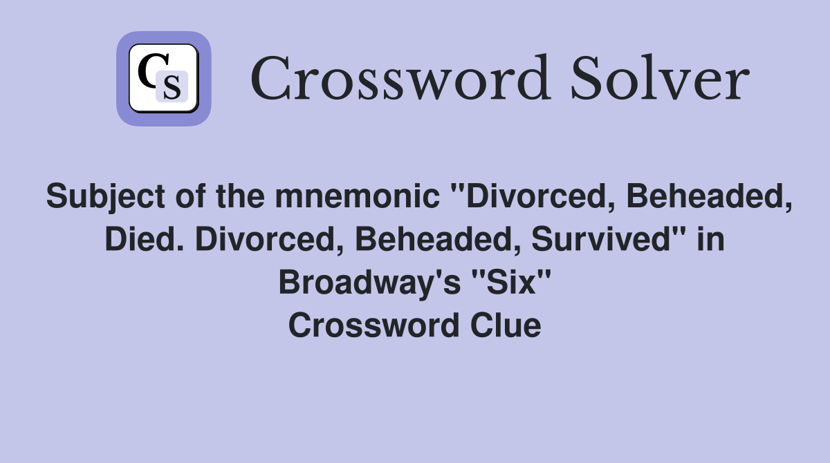 Subject of the mnemonic quot Divorced Beheaded Died Divorced Beheaded