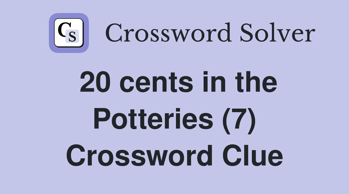 20 cents in the Potteries (7) Crossword Clue Answers Crossword Solver
