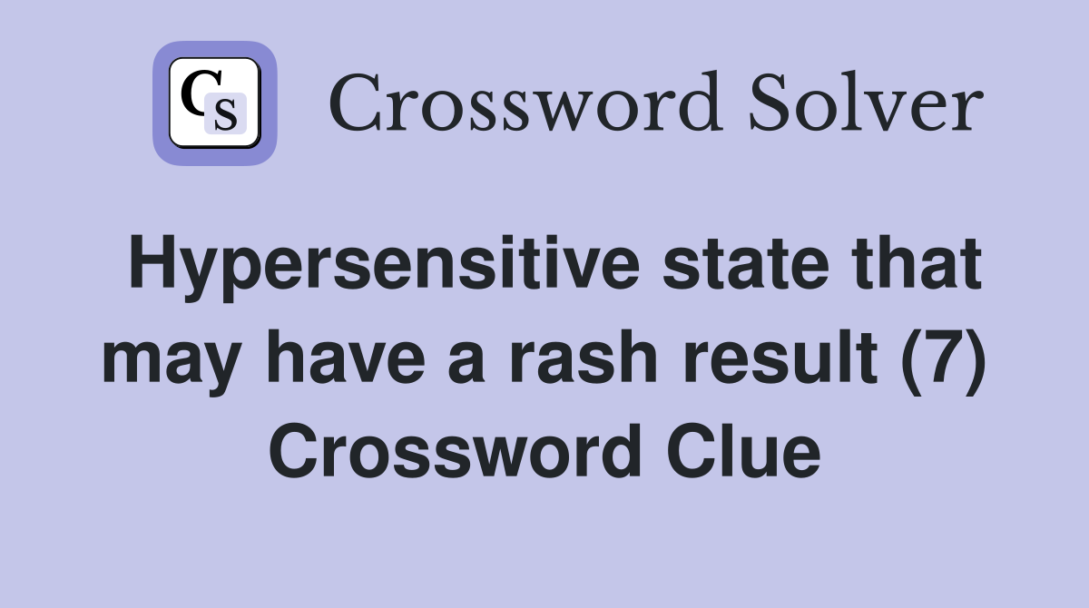 Hypersensitive state that may have a rash result (7) Crossword Clue