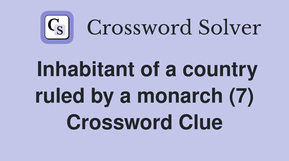 Inhabitant of a country ruled by a monarch (7) Crossword Clue Answers