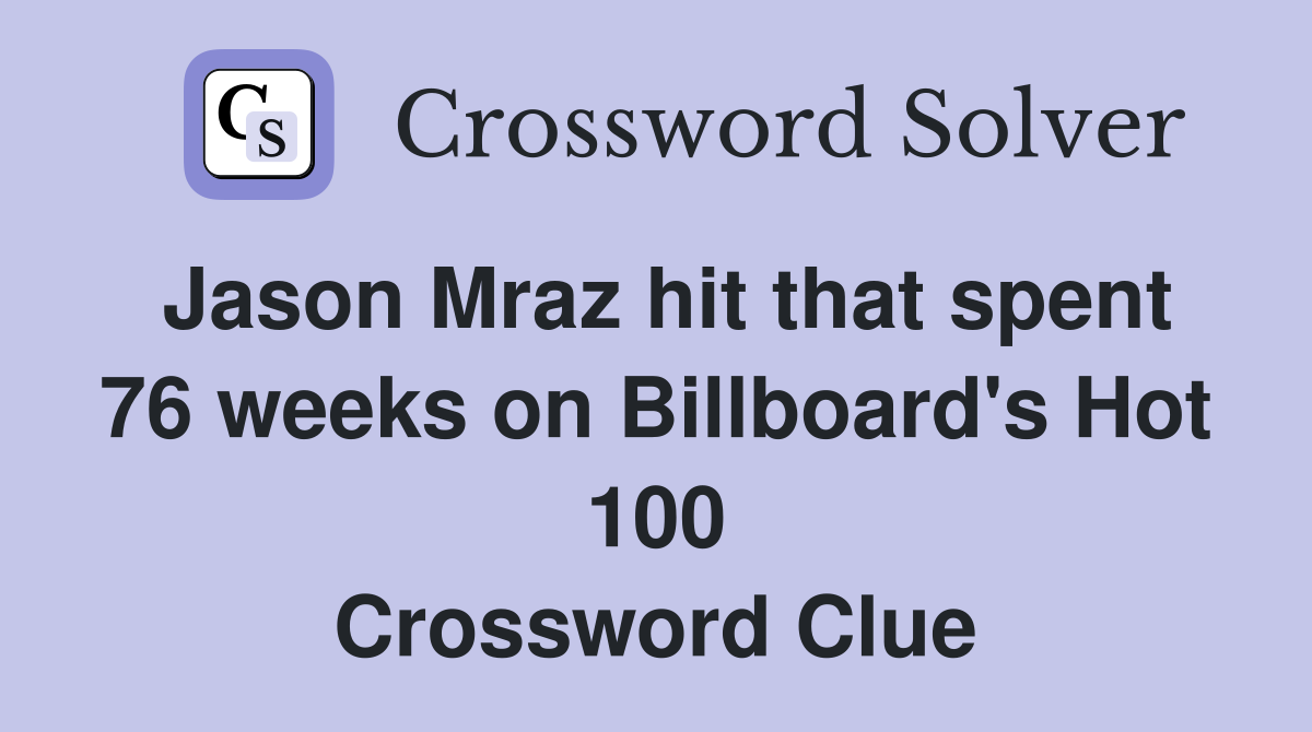 Jason Mraz hit that spent 76 weeks on Billboard #39 s Hot 100 Crossword